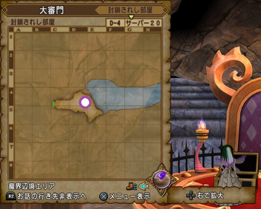 | 大審門 | 封鎖されし部屋D-4黒宝箱![]() 大審門F-7の魔仙卿󠄁のカギで開けられる扉の先 |