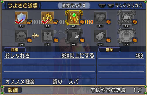 | 真のダーマ神殿 | 極致への道標 つよさの道標(道標ランク5)No.08おしゃれさ![]() |