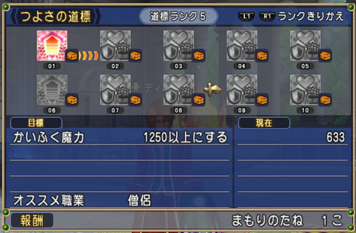 | 真のダーマ神殿 | 極致への道標 つよさの道標(道標ランク5)No.09かいふく魔力![]() |