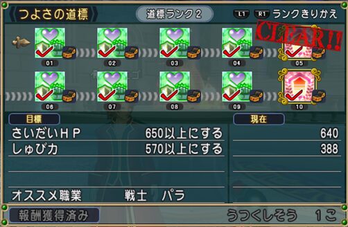 | 真のダーマ神殿 | 極致への道標 つよさの道標(道標ランク2)No.08きようさ、さいだいHP![]() |