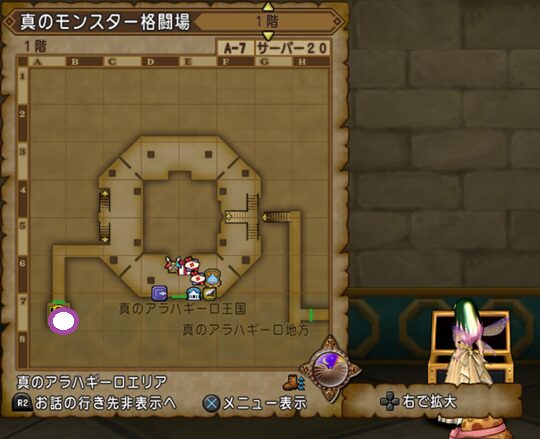 | 真のモンスターの格闘場 | 1階A-7黒宝箱![]() 大盗賊のカギで開けられる扉の先 |