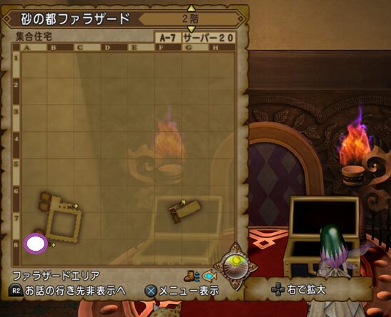 | 砂の都ファラザード | 2階A-8黒宝箱![]() B-8の魔仙卿󠄁のカギで開けられる扉の先の部屋 |